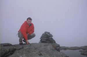 Even on a foggy day, you can still find this highpoint by locating the stone cairn and USGS marker.